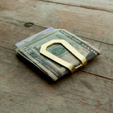Solid brass clip for your money or cards. Cut, engraved, tumbled, and bent by hand in Brooklyn.