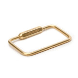 Solid brass, rectangle keyring with threaded hex-shaped closure and laser engraving. Easily holds more than a dozen keys, yet keeps them compactly folded within itself.