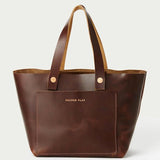 Sleek, minimalistic open-top leather carryall. Handcrafted from Horween® leather and finished with copper rivets and gold embossed Proper Play branding.